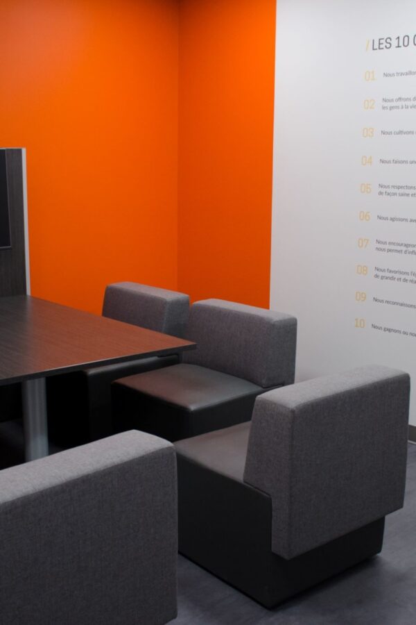 Un concept d’aménagement dans un espace de travail dynamique, vibrant et rassembleur était à la base des souhaits de notre client pour ce projet.
